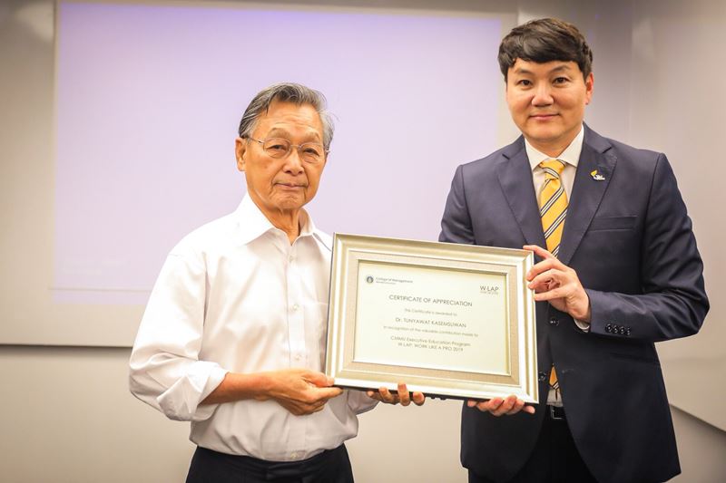Dr. Tunyawat Kasemsuwan, Group Director – Global Innovation, receiving a thank you plaque for being a guest speaker at the Work Like A PRO (W-LAP) program at Mahidol University