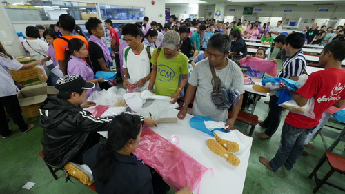 Figure 1: Former external pre-processing facility workers line up for the Thai Union employment application and recruitment process.