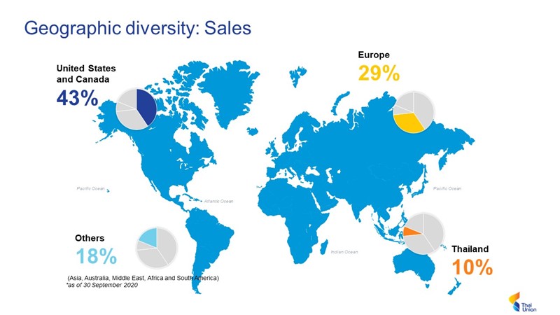 Today, Thai Union is regarded as one of the world’s leading seafood producers and is one of the largest producer of shelf-stable tuna products with annual sales exceeding THB 126.3 billion (US$ 4.1 billion) and a global workforce of over 44,000 people who are dedicated to pioneering sustainable, innovative seafood products.