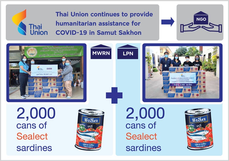 In line with Thai Union’s commitment to support local communities where it operates, the company recently donated 4,000 cans of SEALECT sardines to help migrant workers impacted by COVID-19 in Samut Sakhon. The donation was conducted through local non-profit organizations in Samut Sakhon, including the Migrant Worker Rights Network (MWRN) and the Labour Protection Network (LPN). Khun Siriluk Younglert, Senior Manager for Human Resources Shared Services, represented Thai Union when handing the donations over to MWRN and LPN.