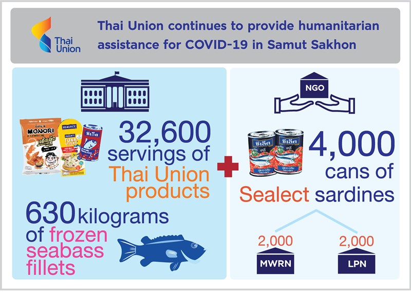 Thai Union has also, cumulatively, donated 32,600 servings of its products and 630 kilograms of frozen seabass fillets since the resurgence of COVID-19 in Samut Sakhon in mid-December 2020, to help people in quarantine and support medical and other related teams in the Samut Sakon Provincial Public Heath Office who are handling the current wave of COVID-19 outbreaks.