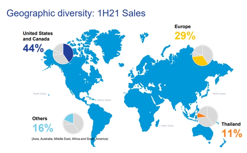 Thai Union’s global footprint has allowed it to deliver ongoing sales growth. The U.S. is Thai Union’s largest market and represented 44 percent of total sales in the first half of this year (2021), followed by Europe at 29 percent, the Thai domestic market at 11 percent, and other markets at 16 percent.