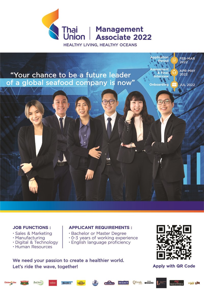 Bangkok – March 3, 2022 – Applications are now open for the Thai Union Management Associate Program 2022. This three-year program provides Management Associates with a hands-on learning experience alongside senior executives from key departments including Sales and Marketing, Manufacturing, Digital Technology, and Human Resources. Applicants must have a Bachelor or Master’s degree, 0-3 years of working experience and be fluent in English.