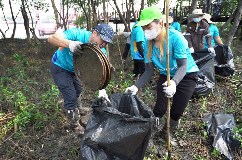 Volunteers collected 1,004 kilograms of trash at the mangrove area around Ban Laem Railway Station and Ban Laem Suwannaram Tample,Tha Chalom Sub-district, Samut Sakhon province in support of the Company’s commitment to Healthy Oceans