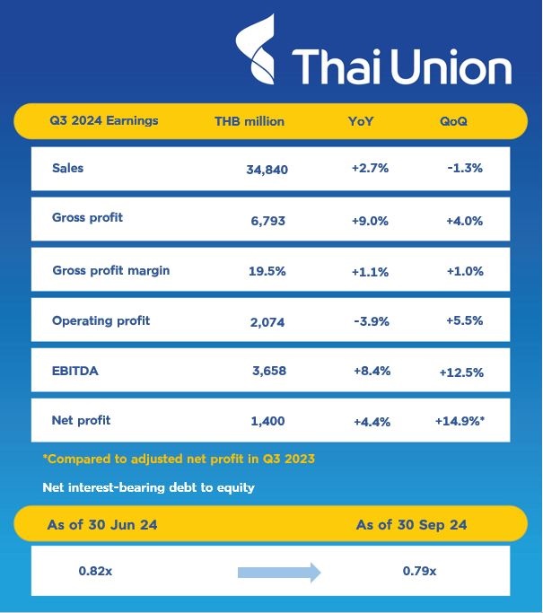 Thai Union records Q3 2024 net profit of THB 1.4 billion, driven by sales growth in Ambient, PetCare, and Value-added categories