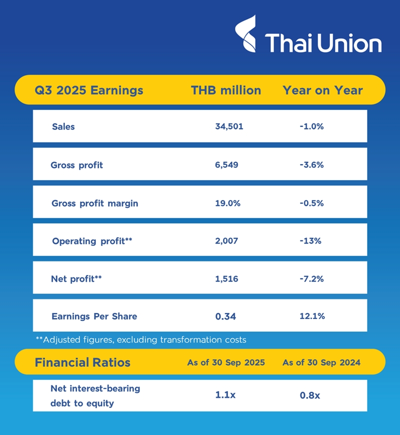 Thai Union records Q3 2025 adjusted net profit of THB 1.5 billion as organic sales return to growth despite global headwinds