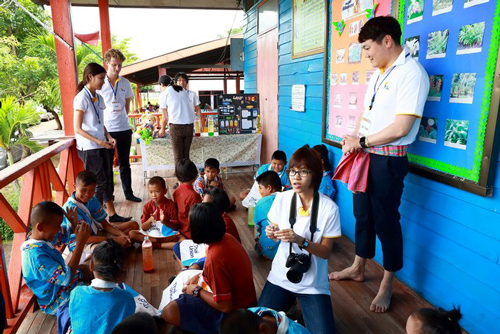 Tunyawat Kasemsuwan, Ph.D., director global innovation for Thai Union, joined as a volunteer to educate basic science skills for students at Ban Kok Khok Witthaya School in Burirum province.