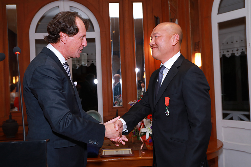 7 February 2017, Bangkok — H.E. Mr. Gilles Garachon, Ambassador of France to Thailand, awarded the “Chevalier de la Légion d’ Honneur” medal to Mr. Thiraphong Chansiri, CEO of Thai Union Group PCL., one of the world’s leading seafood companies.