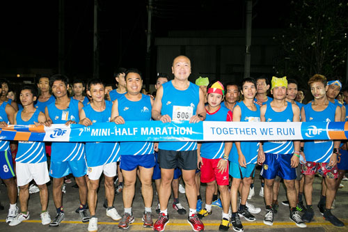 Samut Sakhon - Recently, Mr. Thiraphong Chansiri (middle) President & CEO of Thai Union Group, the world’s seafood expert, presided over and participated in the TUF 7th Annual Mini-Half Marathon. Starting from the factory in Samut Sakhon province, more than 7,000 TUF employees and executives participated in this year’s fun run for distances of 5, 10 and 21 kilometers. The objective of the event is to promote physical and mental health, as well as team work and synergy.