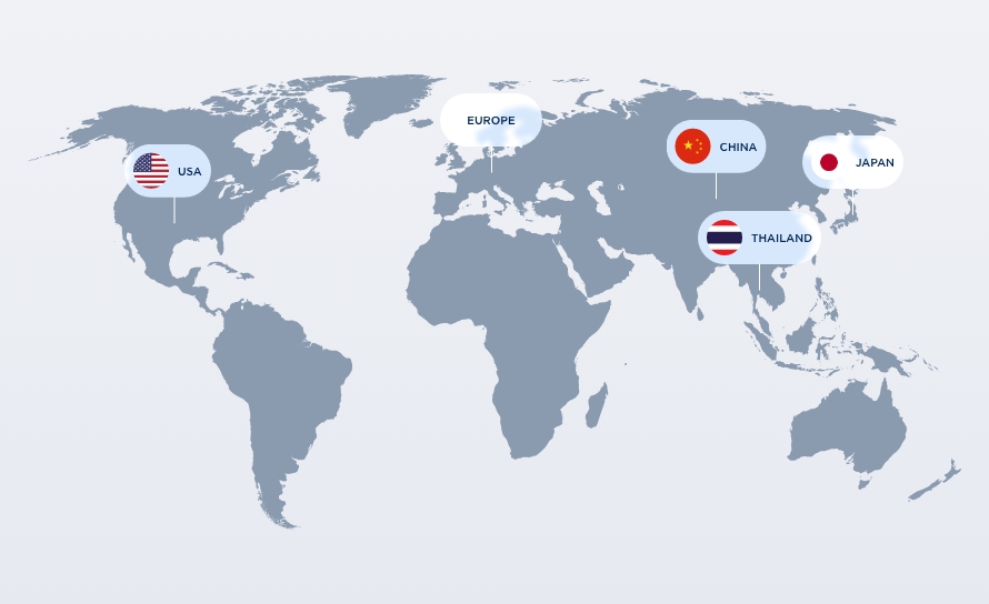 Two processing facilities in Thailand and customer support offices across the EU, U.S., and Asia.