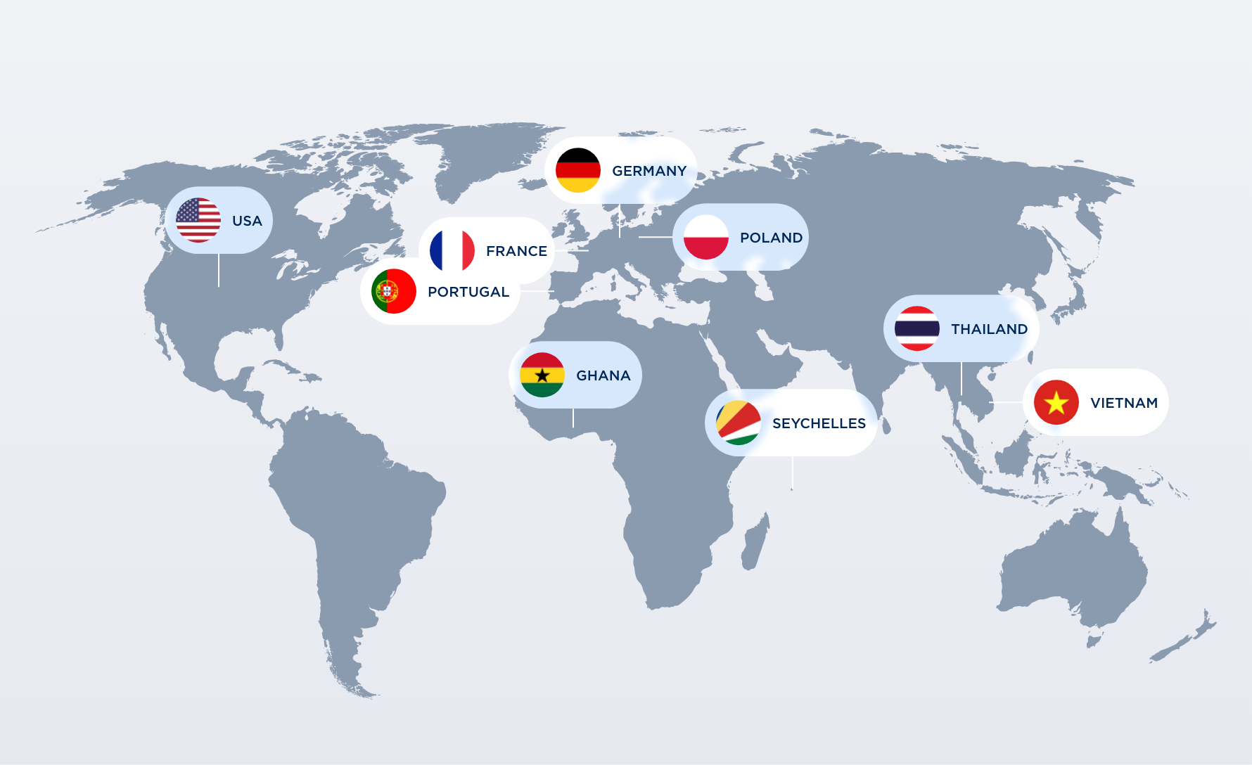 A global network of 9 strategically located, large-scale production facilities, with major hubs in Thailand, Vietnam, Ghana, the Seychelles, France, Portugal, Poland, Germany, and the United States.