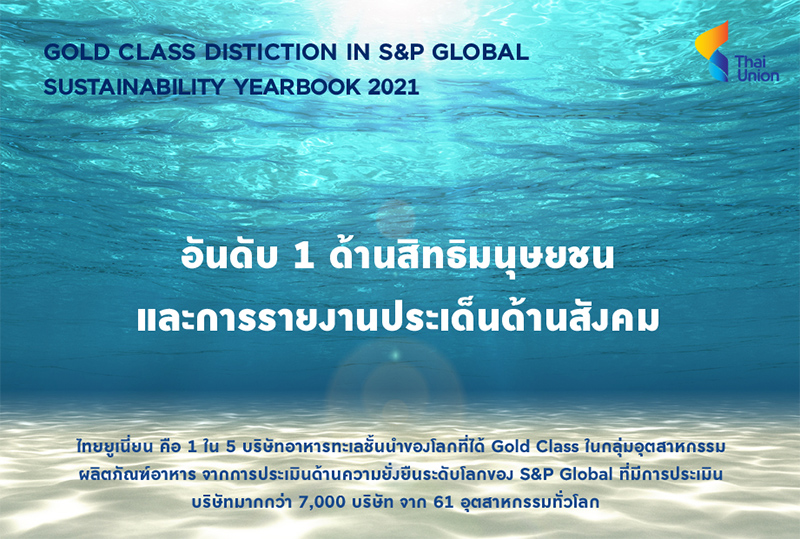 ไทยยูเนี่ยน เป็น 1 ใน 5 บริษัทอาหารทะเลชั้นนำของโลกที่ได้ระดับโกลด์ คลาส ในกลุ่มอุตสาหกรรมผลิตภัณฑ์อาหาร จากการประเมินด้านความยั่งยืนระดับโลกของ S&P Global ที่มีการประเมินบริษัทมากกว่า 7,000 บริษัท จาก 61 อุตสาหกรรมทั่วโลก