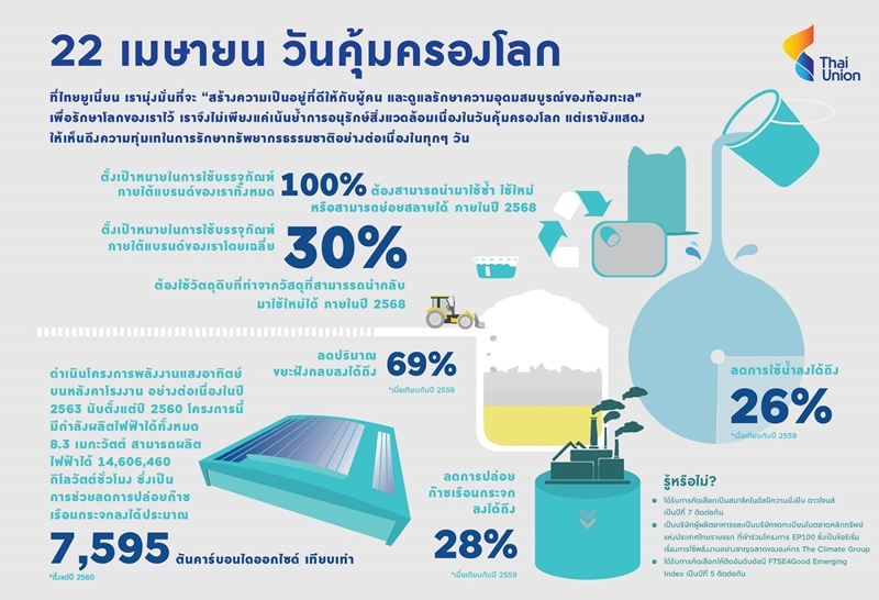 ที่ไทยยูเนี่ยน เรามุ่งมั่นที่จะ “สร้างความเป็นอยู่ที่ดีให้กับผู้คน และดูแลรักษาความอุดมสมบูรณ์ของท้องทะเล" เพื่อรักษาโลกของเราไว้ เราจึงไม่เพียงแค่เน้นย้ำการอนุรักษ์สิ่งแวดล้อมเนื่องในวันคุ้มครองโลก แต่เรายังแสดงให้เห็นถึงความทุ่มเทในการรักษาทรัพยากรธรรมชาติอย่างต่อเนื่องในทุกๆวัน