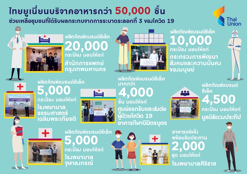ไทยยูเนี่ยน บริจาคอาหารกว่า 50,000 ชิ้น ช่วยเหลือชุมชนที่ได้รับผลกระทบจากการระบาดระลอกที่ 3 ของโควิด 19
